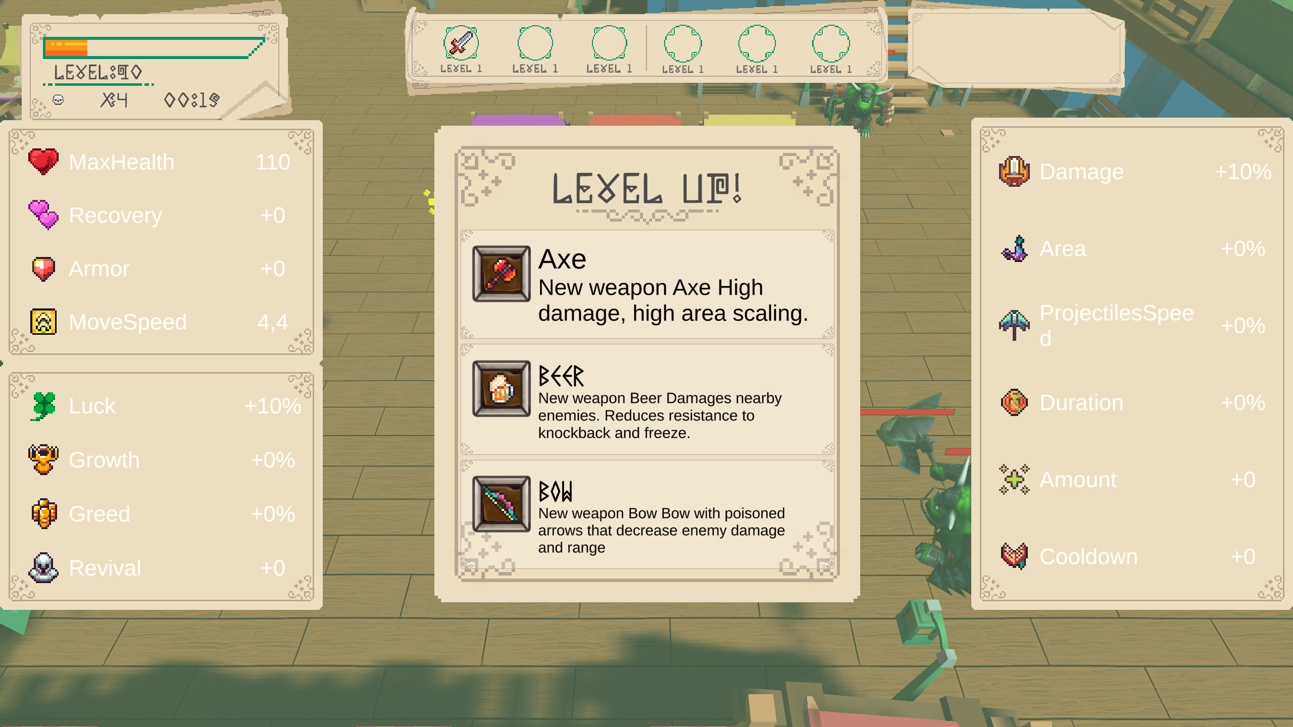 It’s a roguelike game inspired by Vampire Survivors, featuring: